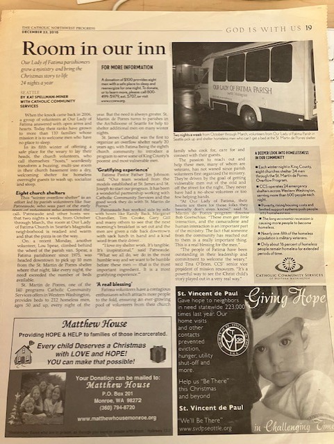The St. Martin Meal Program ministry at Our Lady of Fatima has been going strong for more than 20 years! See the news article that appeared in The Progress on December 23, 2010!
