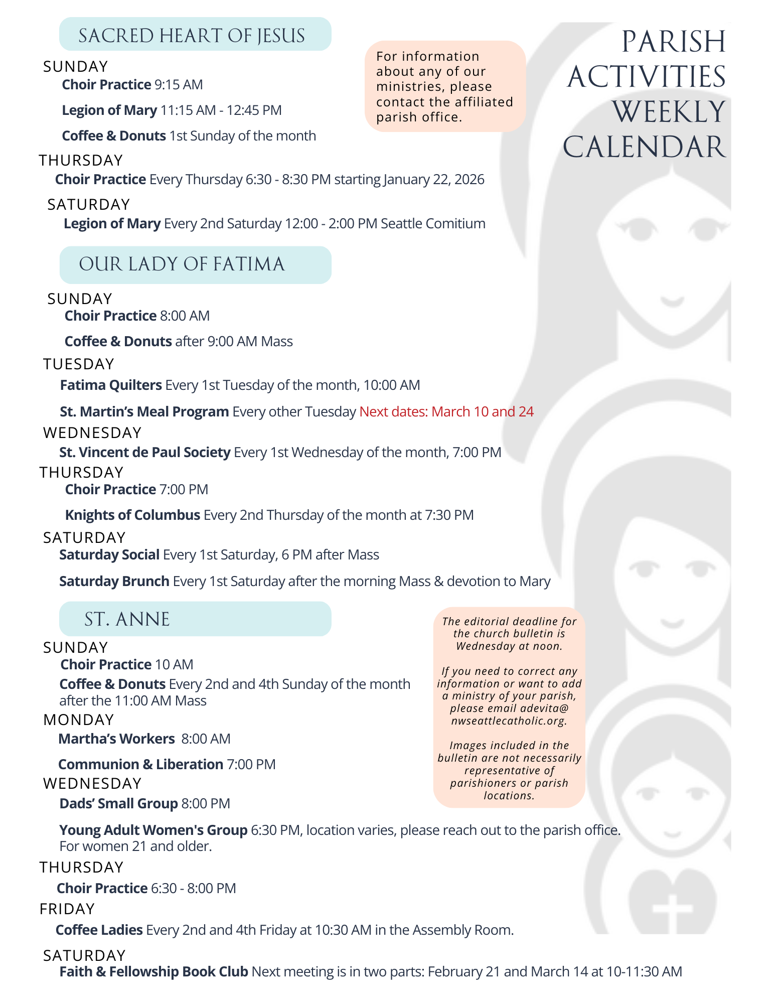 Images included in the bulletin are not necessarily representative of parishioners or parish locations.